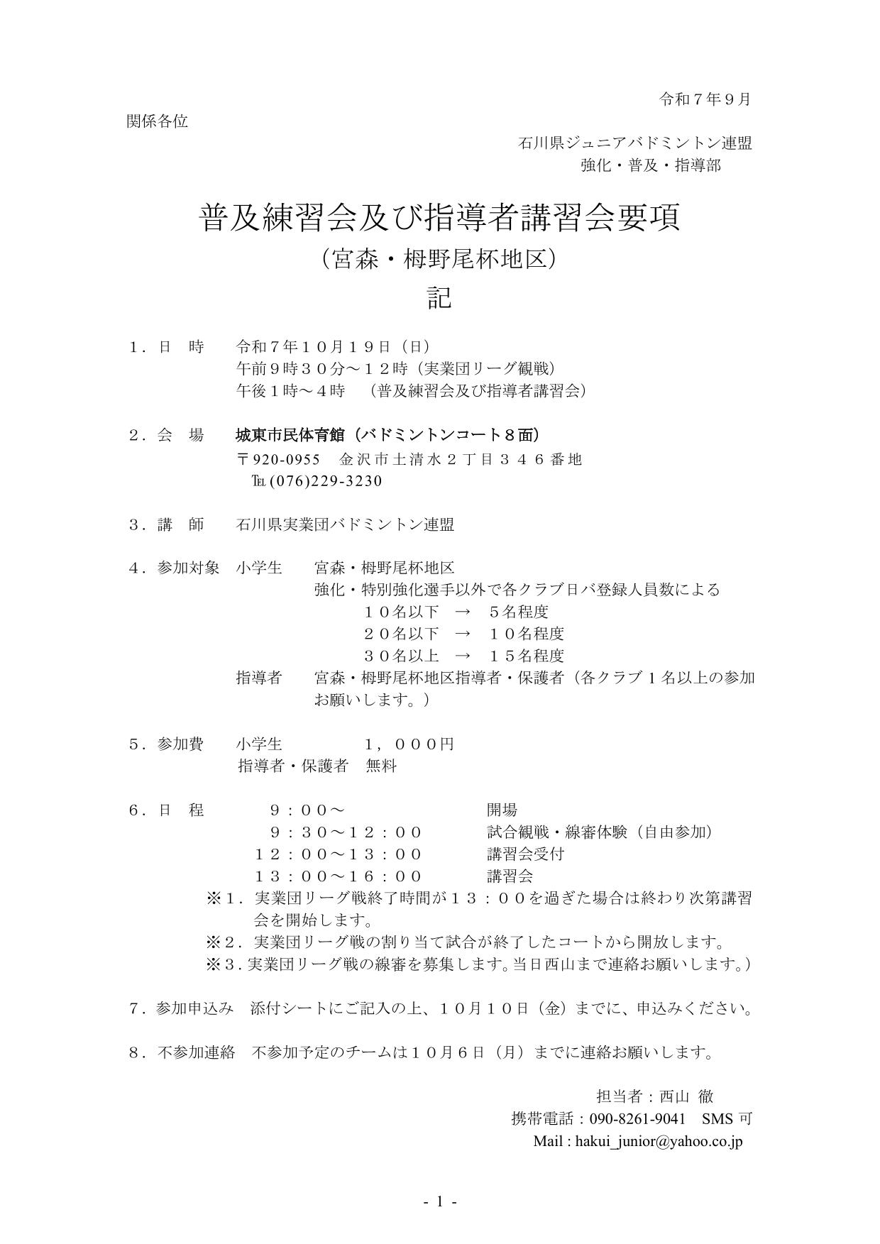 R7年 普及練習会及び指導者講習会.(宮森・栂野尾杯地区) 10/19(日)